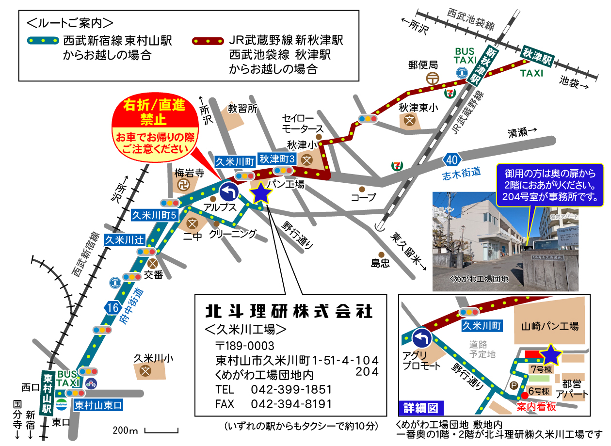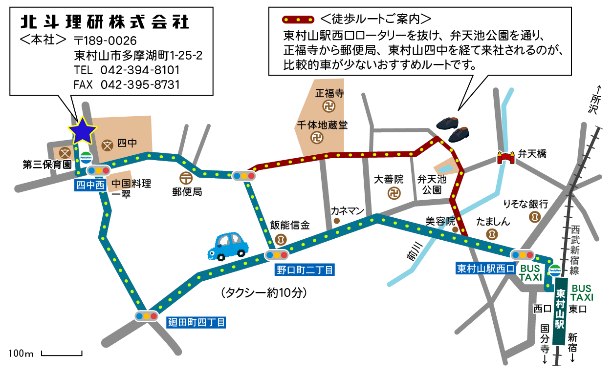 本社へは弁天池を通り正福寺から郵便局、東村山四中を経て来社されるのが